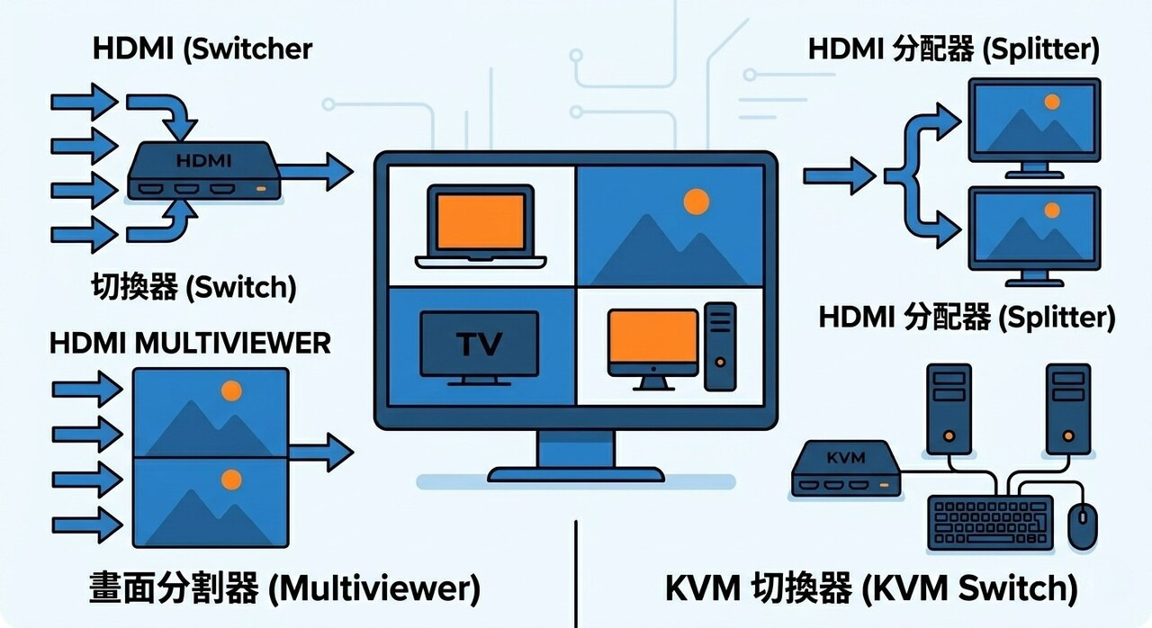 HDMI切換器 vs 分配器差在哪?新手一次看懂