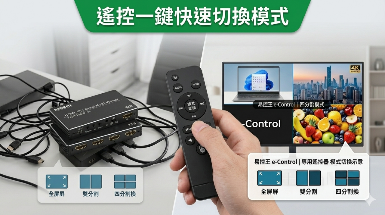 這款【易控王】HDMI畫面分割器主打「多設備整合+多畫面顯示」,適合現代多裝置環境。