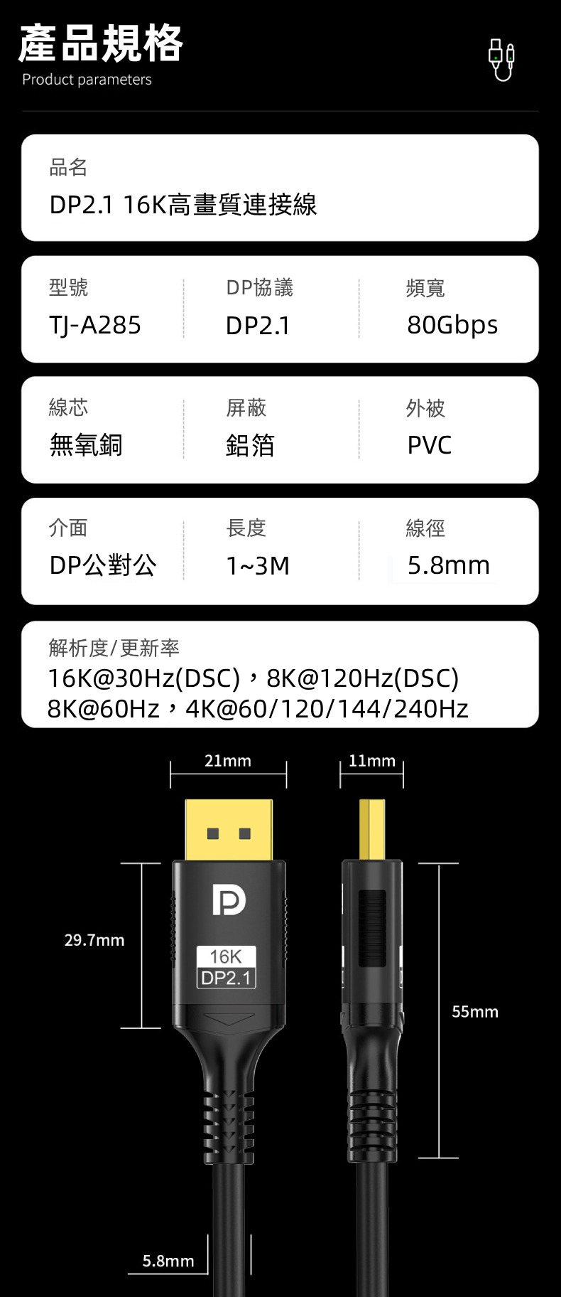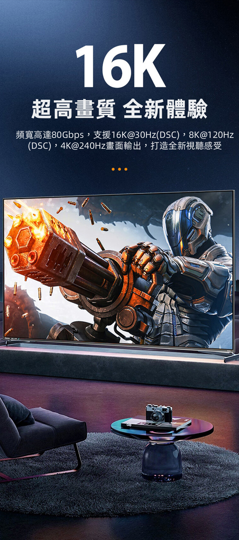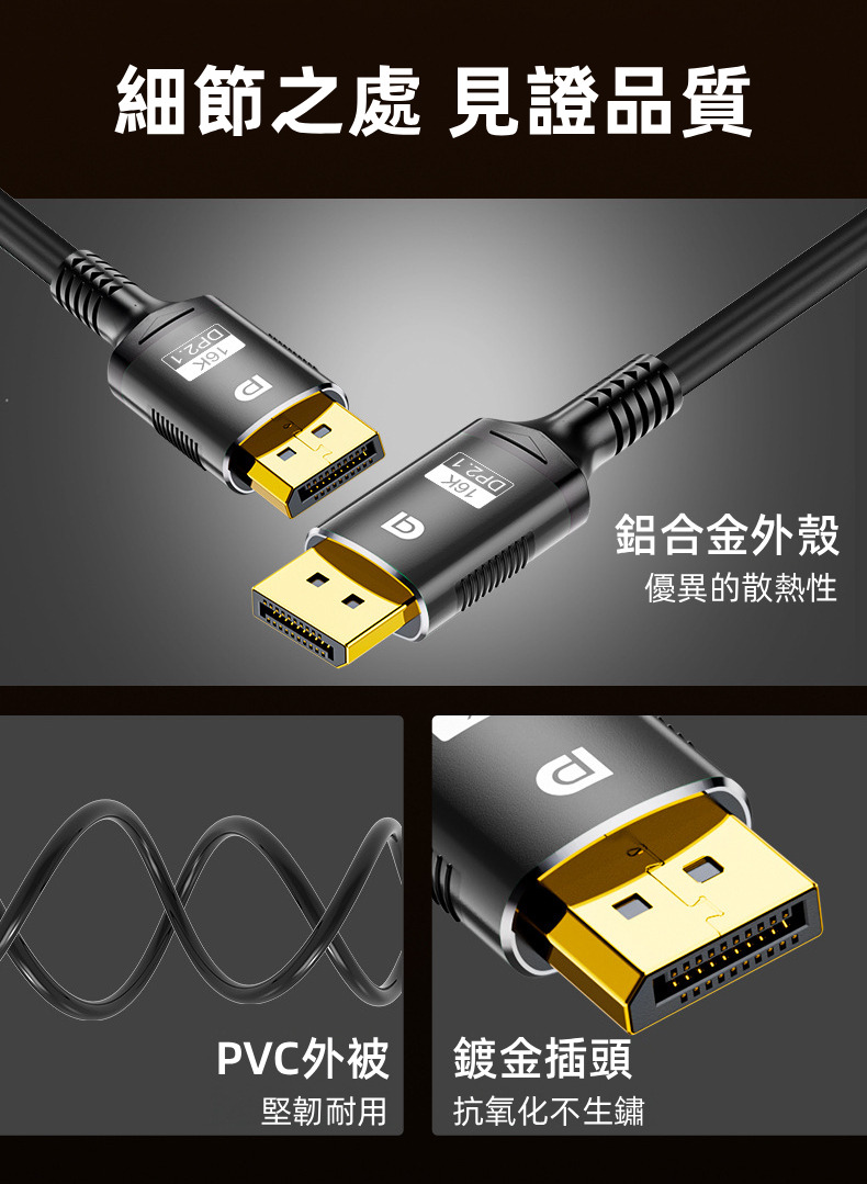 ⚡ DP 2.1 真 16K|4K 240Hz 高刷新|鋁合金・鍍金接頭