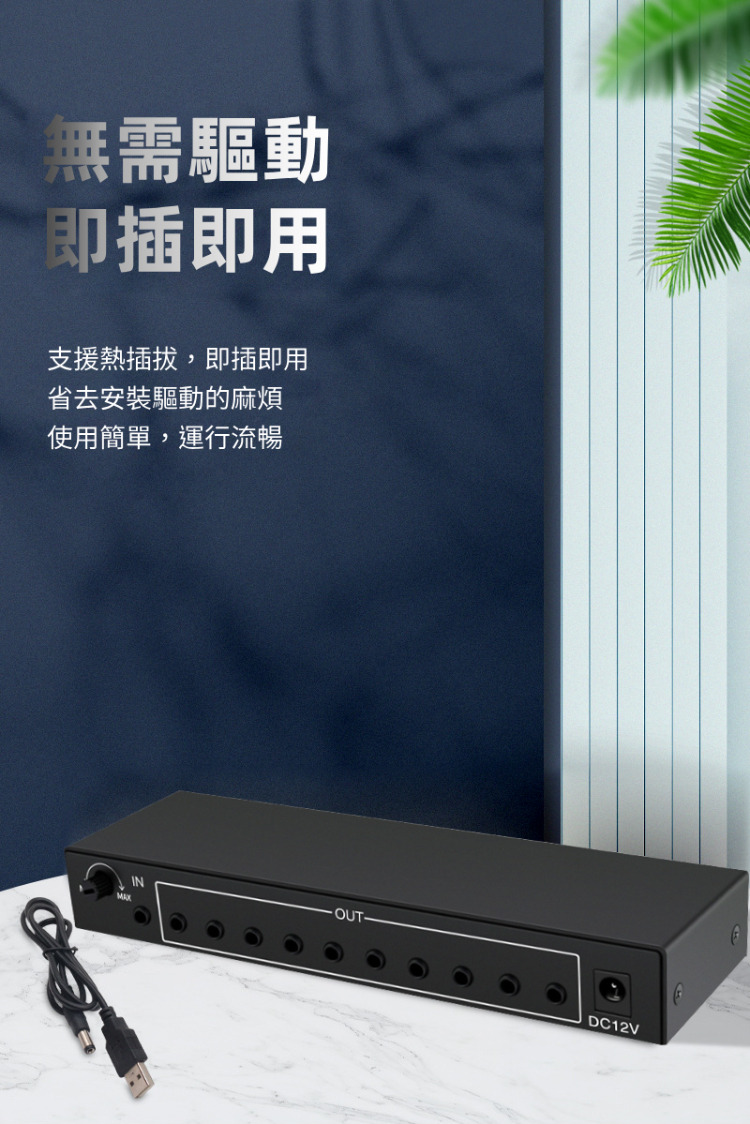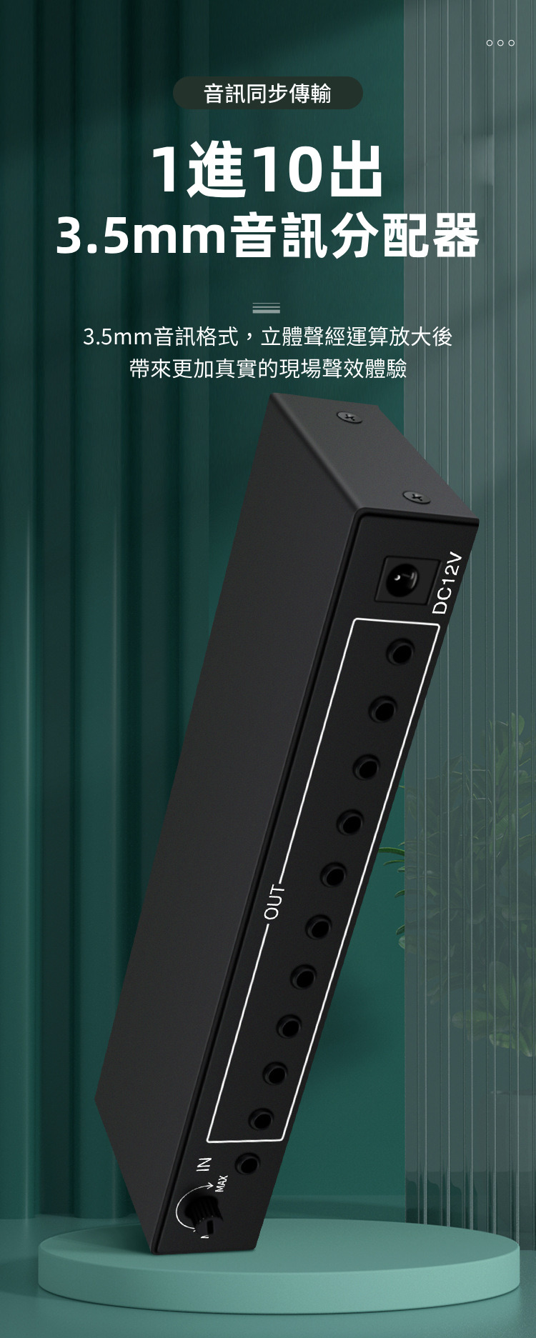 🎧 10路同步分享: 單一音源輸入,十組 3.5mm 同時輸出,效率最高
