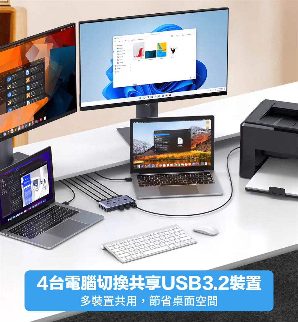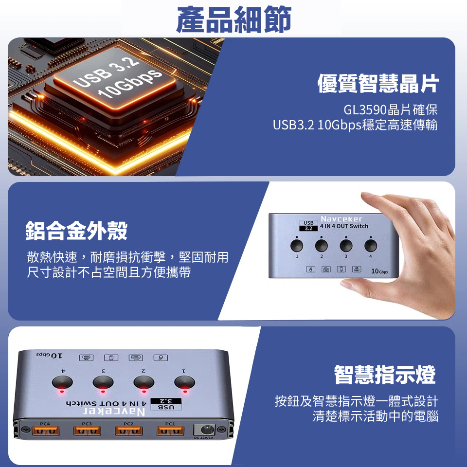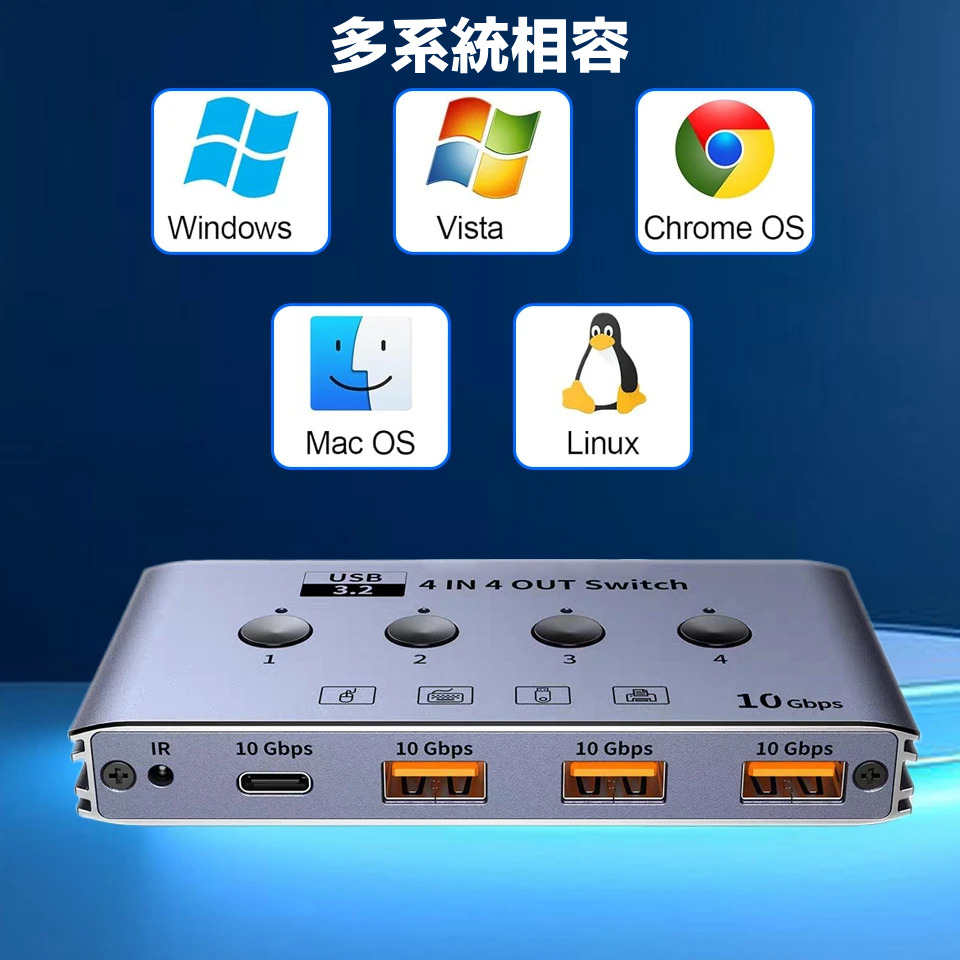 🚀 10Gbps 極速進化!4進4出 USB3.2 共享器,效率新標竿