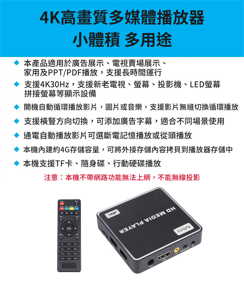 4K迷你HDMI播放器,影片圖片自動循環,廣告展示/PPT輪播超方便!