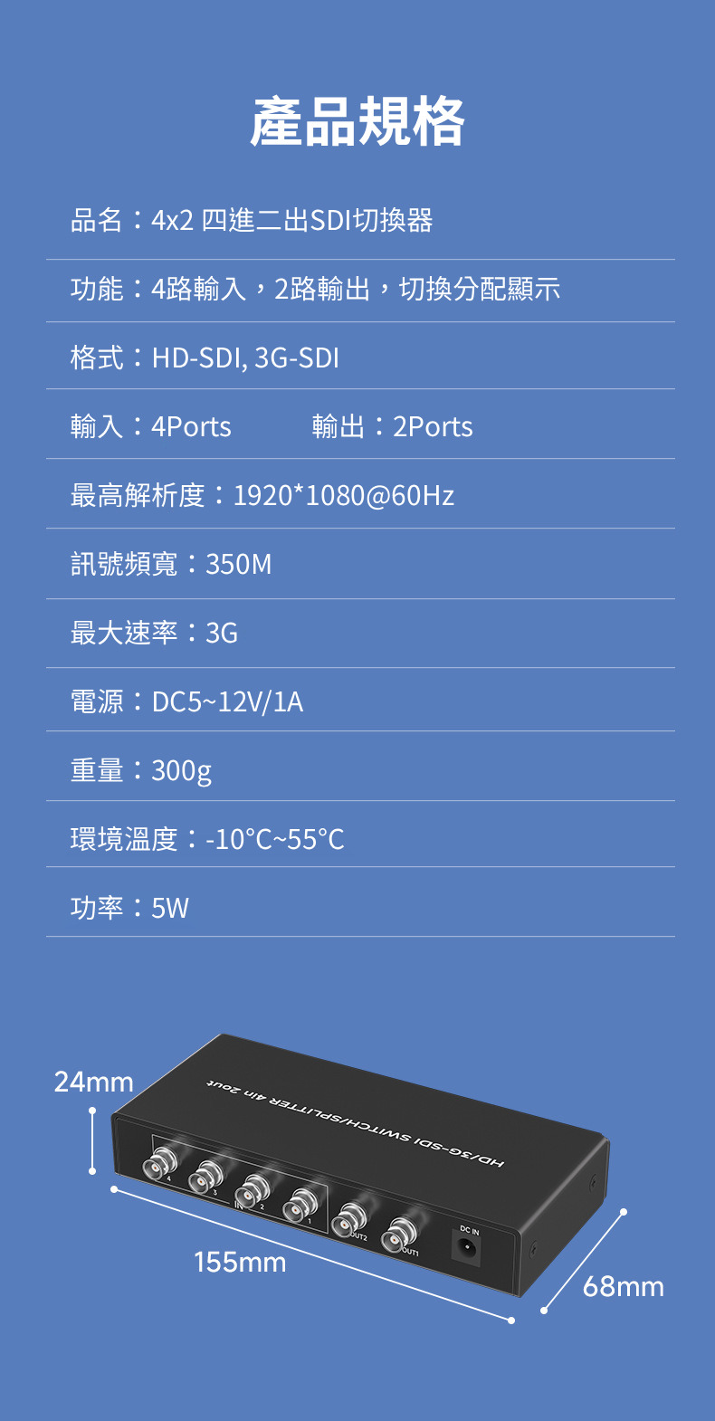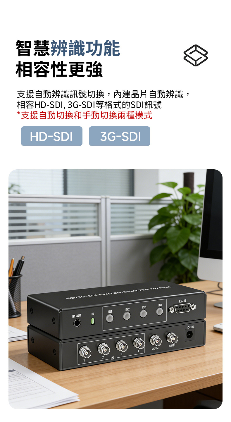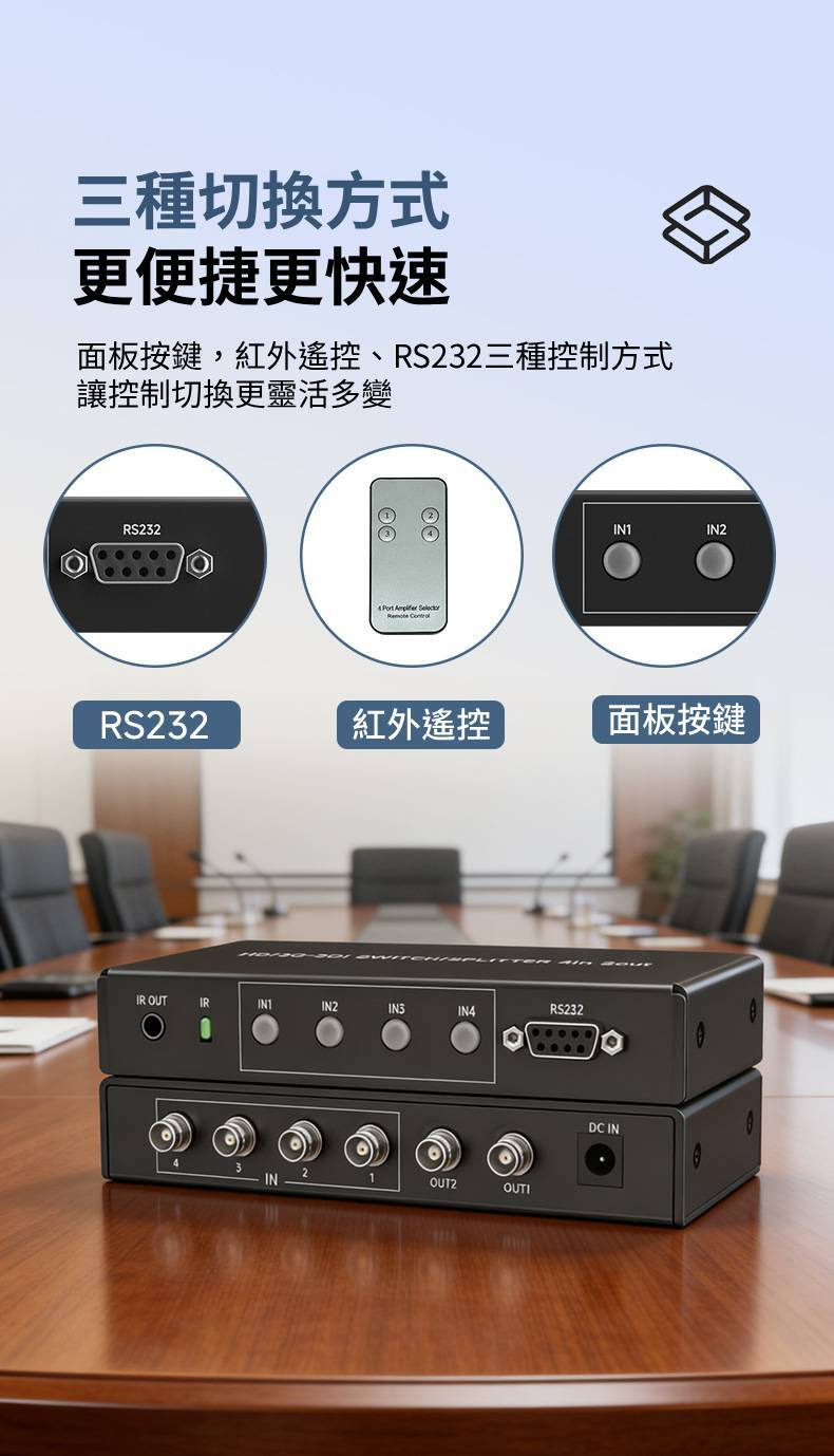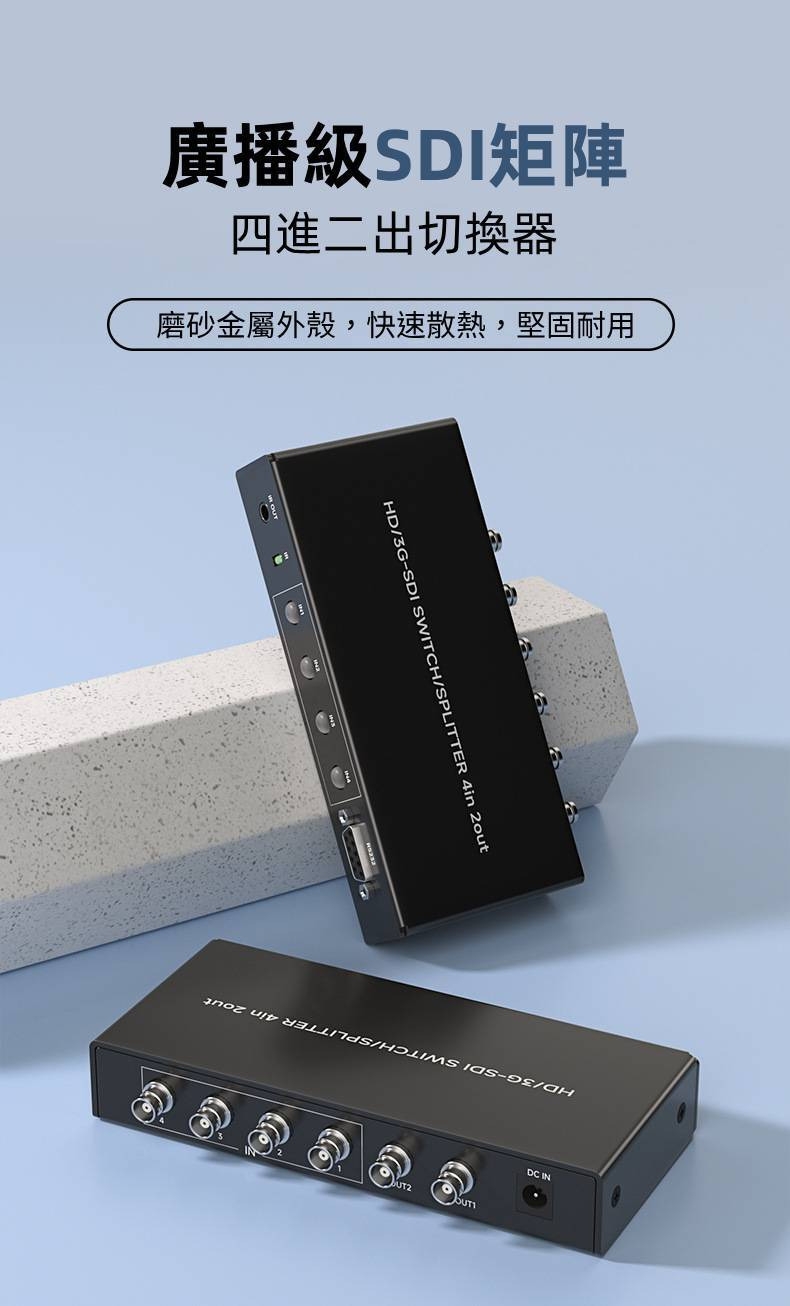 【易控王】4x2 四進二出SDI切換器 選擇器 3G/HD/SD 外接電源 遠端遙控切換 (50-536-03)